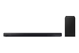 La soundbar ha una configurazione audio a 5.1.2 canali, con altoparlanti laterali e superiori per un effetto acustico avvolgente. L'audio è stato progettato dal Samsung Audio Lab per garantire un'esperienza di ascolto da cinema. La funzione Q-Symphony crea un'armonia perfetta tra la soundbar e gli altoparlanti del televisore, mentre l'assistente vocale integrato è compatibile con Alexa e Google Assistant per un controllo con la voce.